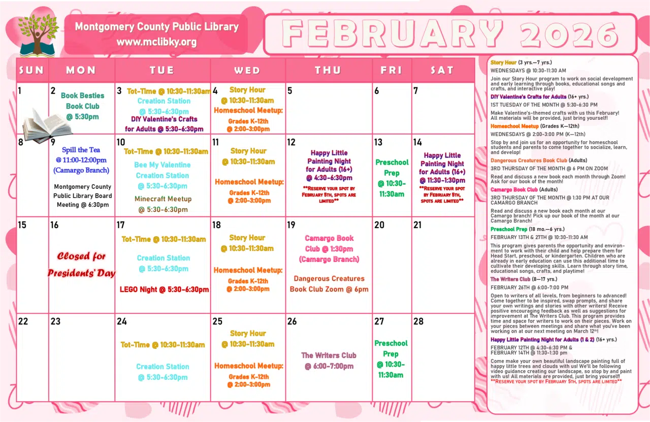 Want to learn more about a program? Check out our information sheet that tells exactly what each program is all about! Stop by the library to pick up a physical copy of our calendar.
